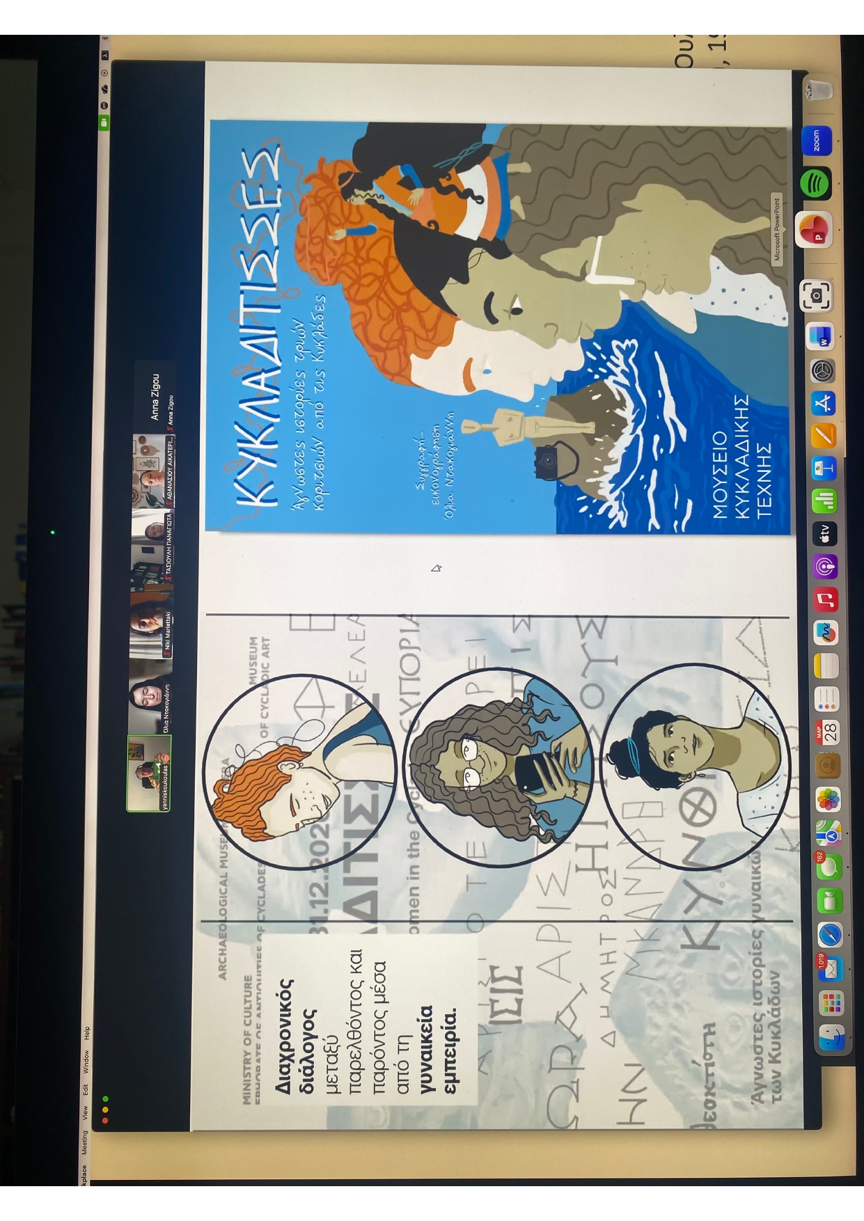 Την Παρασκευή 27 Μαρτίου 2026 στις 11.00, στο πλαίσιο του μαθήματος «Παιδαγωγικό Υλικό και Τέχνη» με διδάσκοντα τον Επίκουρο Καθηγητή του ΤΕΠΑΕΣ κ. Γιάννη Κουκουλά, πραγματοποιήθηκε διαδικτυακά η διάλεξη της Μουσειοπαιδαγωγού και Καλλιτέχνιδας Μαρίας-Όλιας Ντακογιάννη, συνεργάτιδας του Μουσείου Κυκλαδικής Τέχνης και δημιουργού κόμικς, με θέμα: «Δημιουργία παιδαγωγικού υλικού για μουσεία».